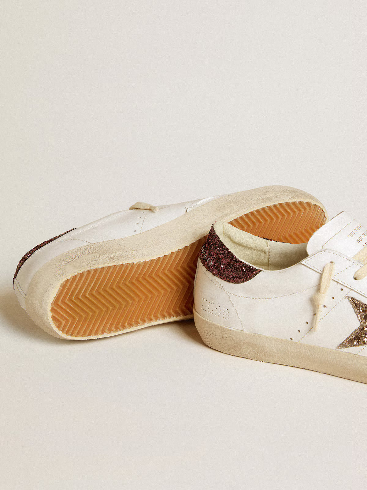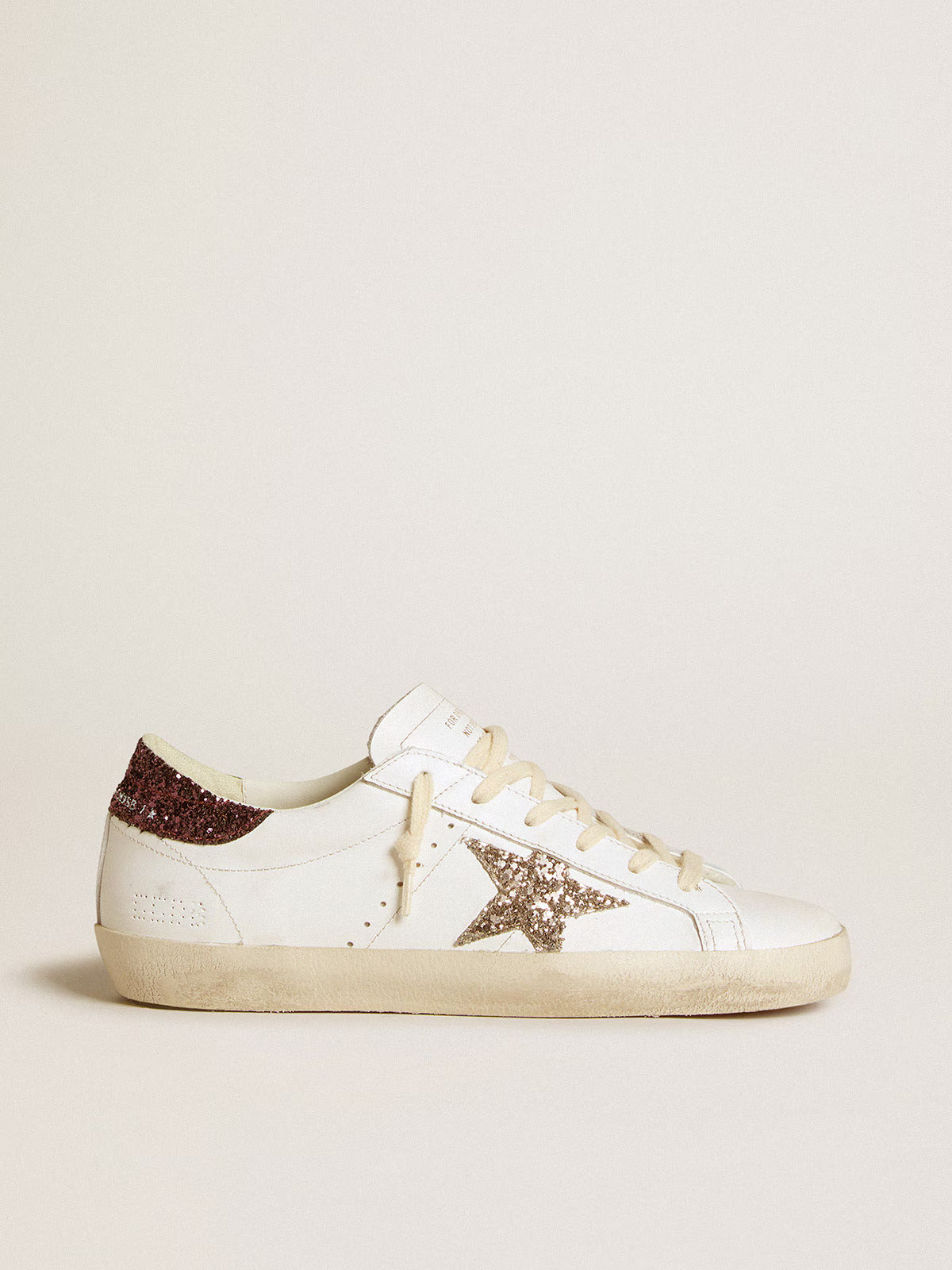 Une icône intemporelle, mais en constante évolution. Chez Golden, nous aimons reprendre nos classiques et les revisiter en permanence, toujours sous un nouveau jour. Dotées d’une tige en cuir blanc, ces Super-Star se distinguent par une étoile à paillettes dorées et un contrefort à paillettes bordeaux. Les lacets couleur crème apportent la touche finale.